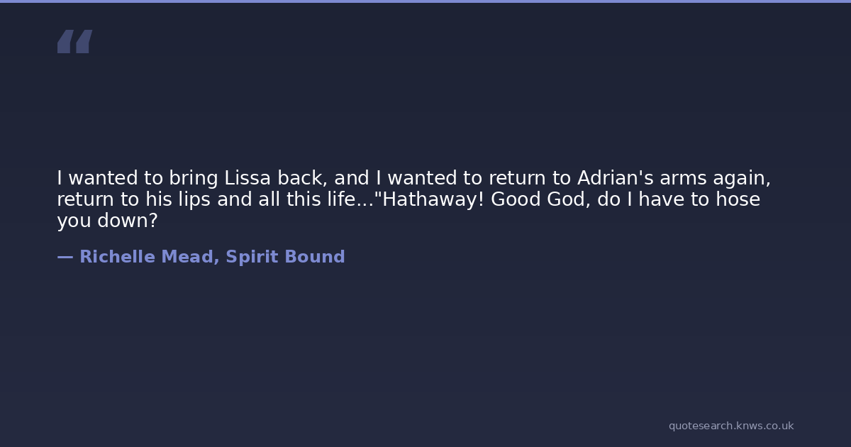 I wanted to bring Lissa back, and I wanted to return to Adrian's arms again, return to his lips and all this life..."Hathaway! Good God, do I have to hose you down?
