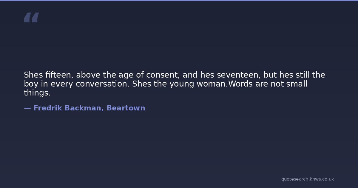 Shes fifteen, above the age of consent, and hes seventeen, but hes still the boy in every conversation. Shes the young woman.Words are not small things.