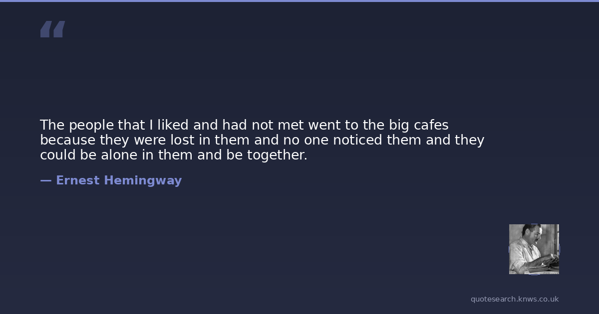 The people that I liked and had not met went to the big cafes because they were lost in them and no one noticed them and they could be alone in them and be together.
