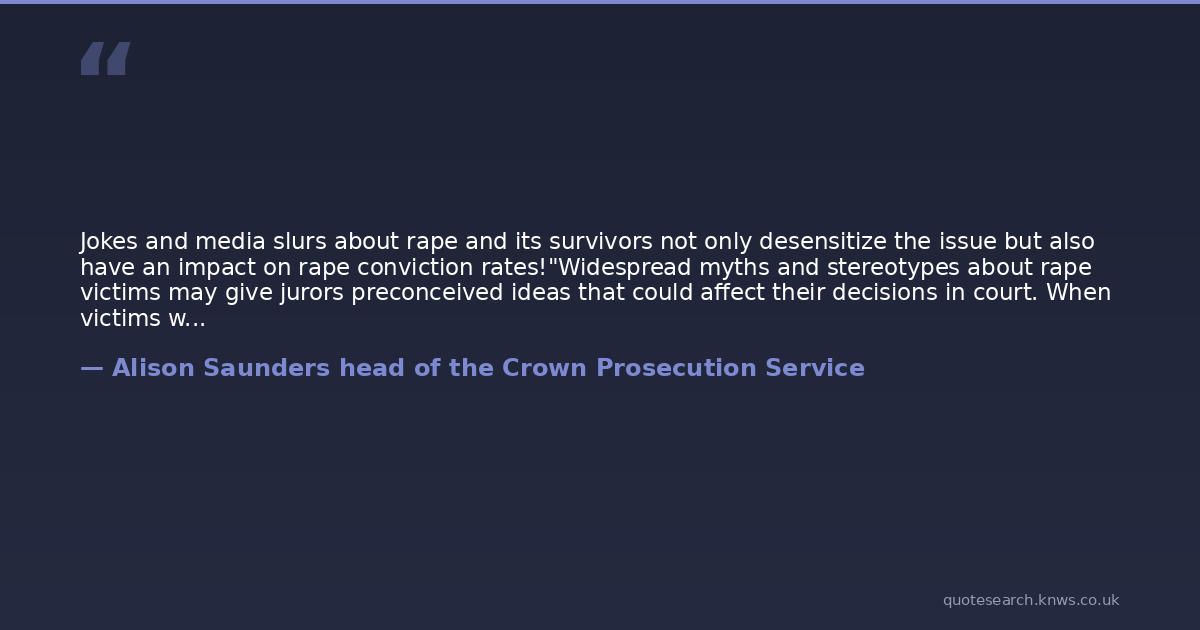 Jokes and media slurs about rape and its survivors not only desensitize the issue but also have an impact on rape conviction rates!"Widespread myths and stereotypes about rape victims may give jurors preconceived ideas that could affect their decisions in court. When victims were demonised in the media, you can see how juries would bring their preconceptions to bear."-Alison Saunders, head of the Crown Prosecution Service, UK.