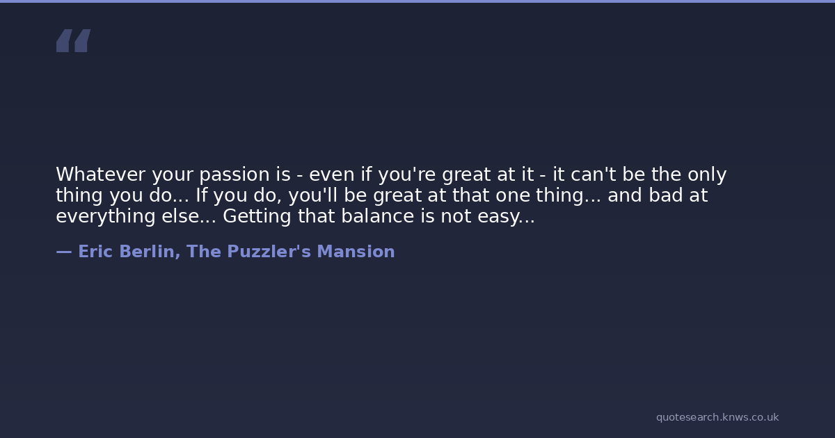 Whatever your passion is - even if you're great at it - it can't be the only thing you do... If you do, you'll be great at that one thing... and bad at everything else... Getting that balance is not easy...