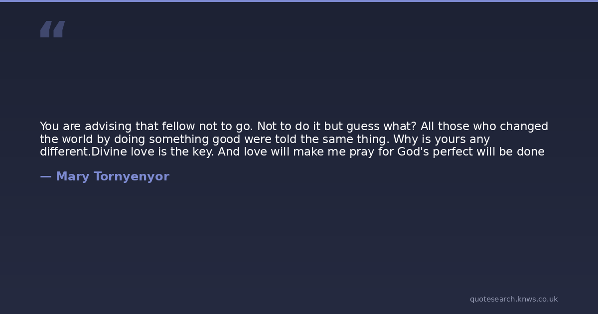 You are advising that fellow not to go. Not to do it but guess what? All those who changed the world by doing something good were told the same thing. Why is yours any different.Divine love is the key. And love will make me pray for God's perfect will be done