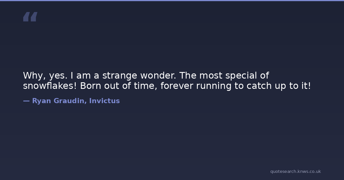Why, yes. I am a strange wonder. The most special of snowflakes! Born out of time, forever running to catch up to it!