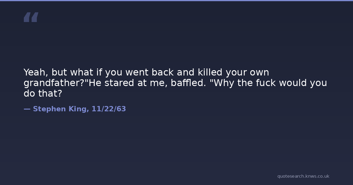 Yeah, but what if you went back and killed your own grandfather?"He stared at me, baffled. "Why the fuck would you do that?