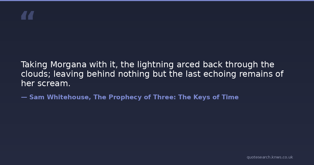 Taking Morgana with it, the lightning arced back through the clouds; leaving behind nothing but the last echoing remains of her scream.
