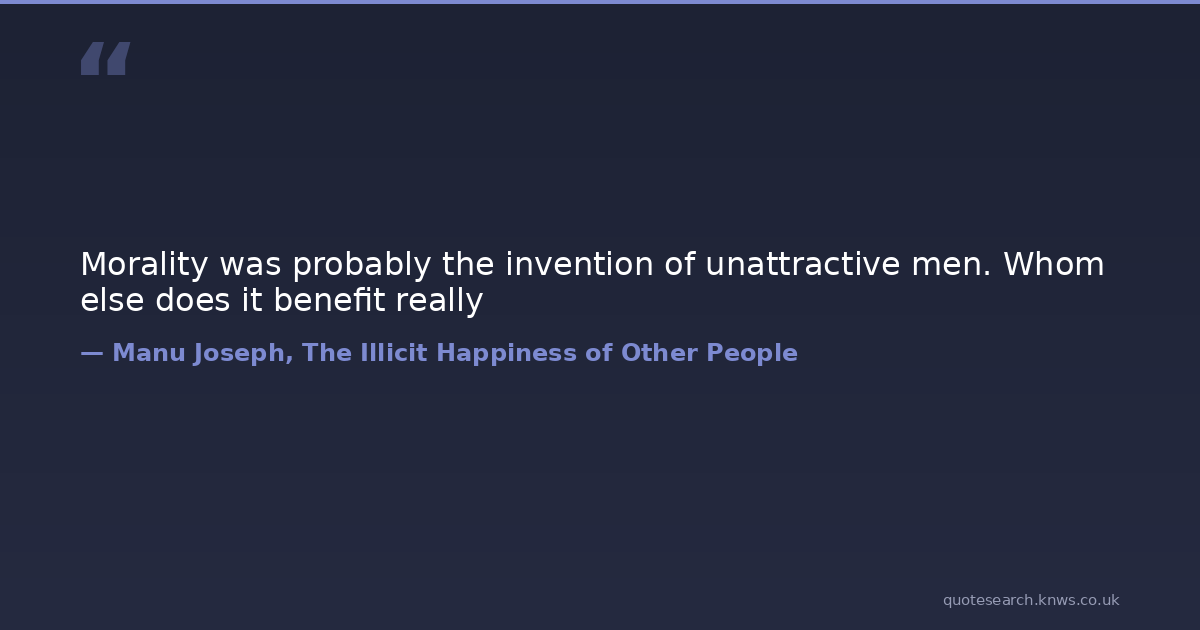 Morality was probably the invention of unattractive men. Whom else does it benefit really