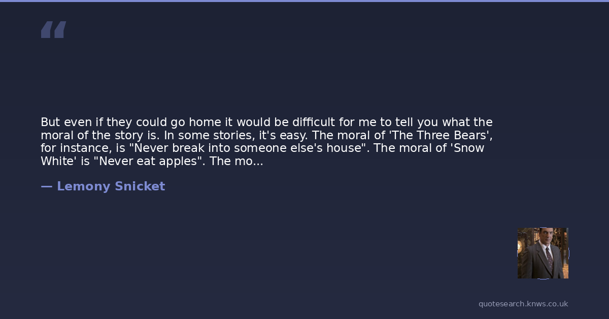 But even if they could go home it would be difficult for me to tell you what the moral of the story is. In some stories, it's easy. The moral of 'The Three Bears', for instance, is "Never break into someone else's house". The moral of 'Snow White' is "Never eat apples". The moral of World War One is "Never assassinate Archduke Ferdinand.