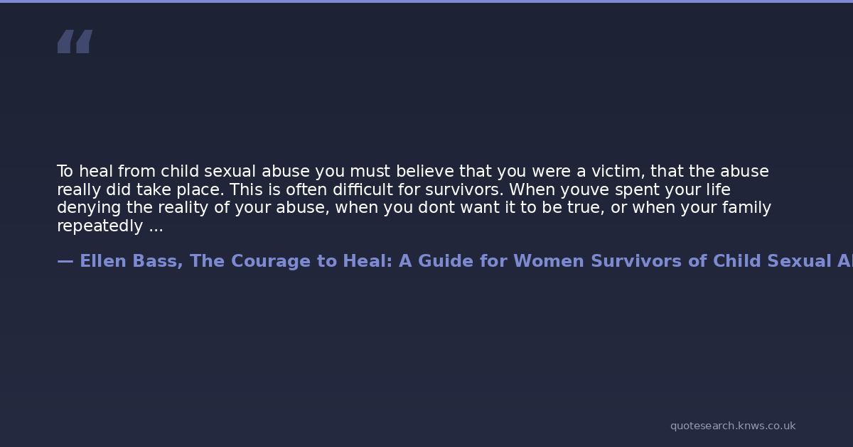 To heal from child sexual abuse you must believe that you were a victim, that the abuse really did take place. This is often difficult for survivors. When youve spent your life denying the reality of your abuse, when you dont want it to be true, or when your family repeatedly calls you crazy or a liar, it can be hard to remain firm in the knowledge that you were abused.