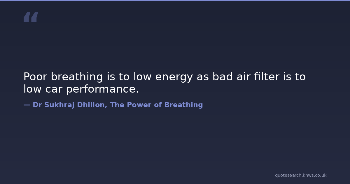 Poor breathing is to low energy as bad air filter is to low car performance. breathing healthy stress-management yoga Download Image Share on X Share on Facebook Copy Link