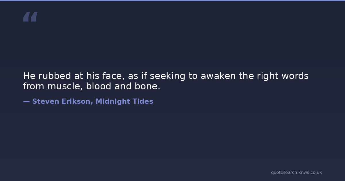 He rubbed at his face, as if seeking to awaken the right words from muscle, blood and bone. fantasy-fiction Download Image Share on X Share on Facebook Copy Link