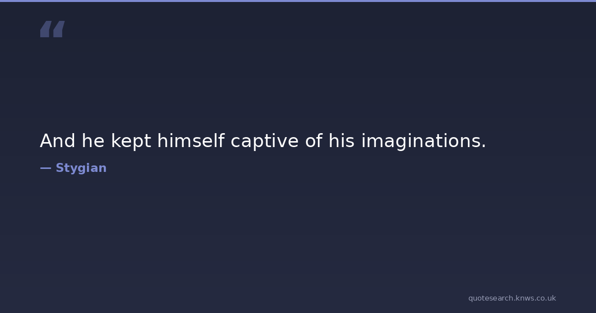 And he kept himself captive of his imaginations. fantasy-fiction Download Image Share on X Share on Facebook Copy Link