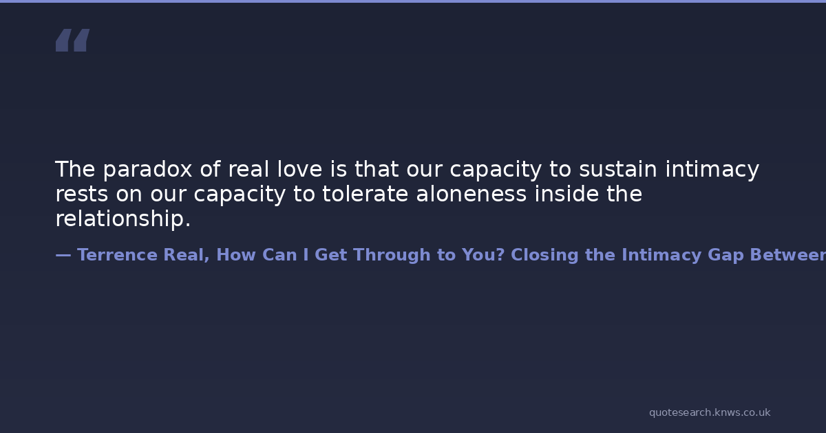 The paradox of real love is that our capacity to sustain intimacy rests on our capacity to tolerate aloneness inside the relationship.