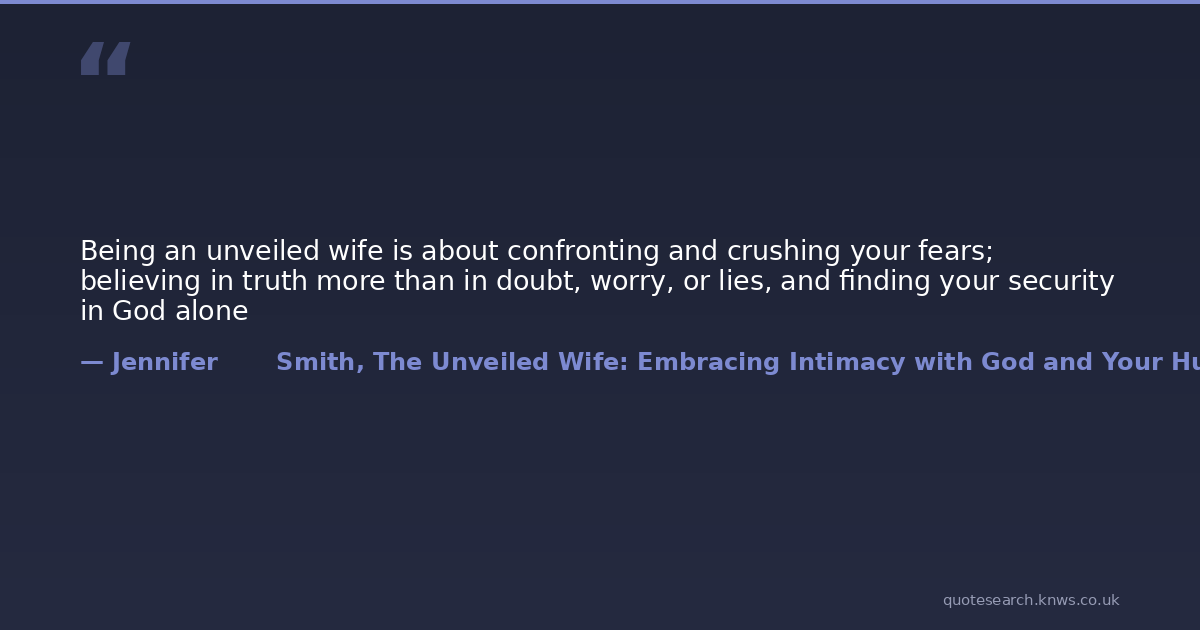 Being an unveiled wife is about confronting and crushing your fears; believing in truth more than in doubt, worry, or lies, and finding your security in God alone