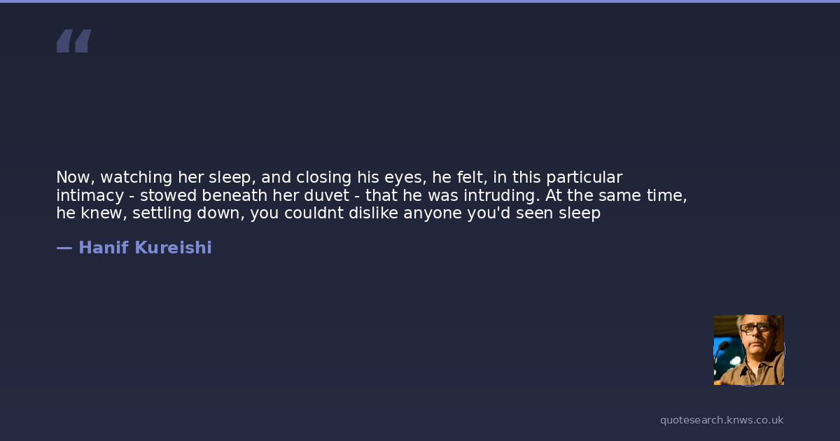 Now, watching her sleep, and closing his eyes, he felt, in this particular intimacy - stowed beneath her duvet - that he was intruding. At the same time, he knew, settling down, you couldnt dislike anyone you'd seen sleep