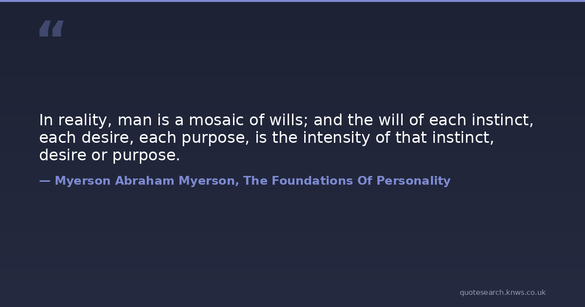 In reality, man is a mosaic of wills; and the will of each instinct, each desire, each purpose, is the intensity of that instinct, desire or purpose.