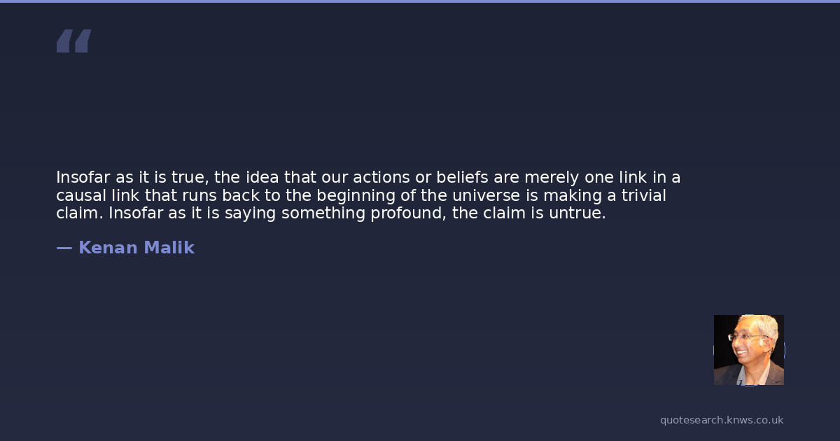 Insofar as it is true, the idea that our actions or beliefs are merely one link in a causal link that runs back to the beginning of the universe is making a trivial claim. Insofar as it is saying something profound, the claim is untrue.