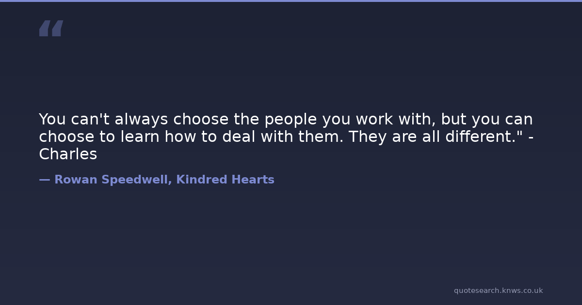 You can't always choose the people you work with, but you can choose to learn how to deal with them. They are all different." - Charles