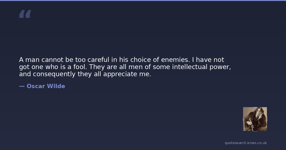 A man cannot be too careful in his choice of enemies. I have not got one who is a fool. They are all men of some intellectual power, and consequently they all appreciate me.