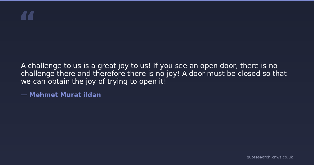 A challenge to us is a great joy to us! If you see an open door, there is no challenge there and therefore there is no joy! A door must be closed so that we can obtain the joy of trying to open it!