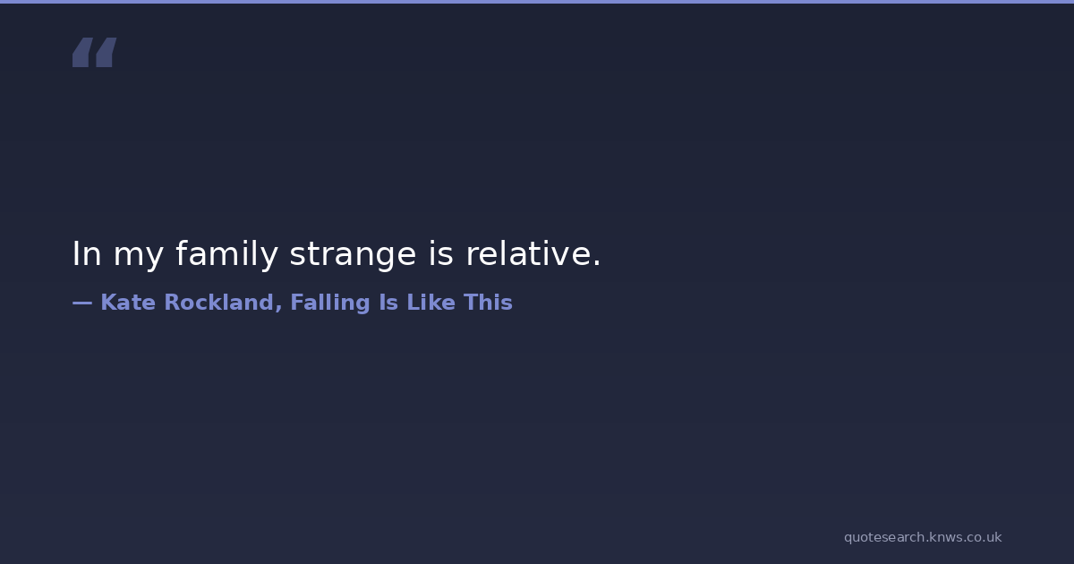In my family strange is relative. family-relationships strangeness Download Image Share on X Share on Facebook Copy Link