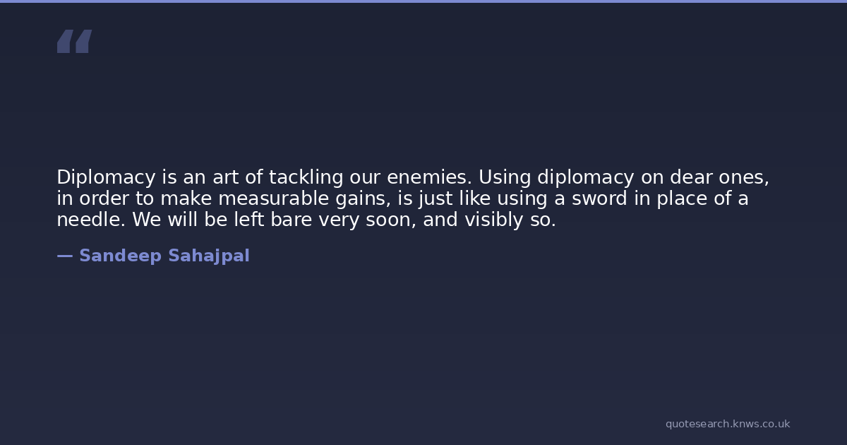 Diplomacy is an art of tackling our enemies. Using diplomacy on dear ones, in order to make measurable gains, is just like using a sword in place of a needle. We will be left bare very soon, and visibly so.