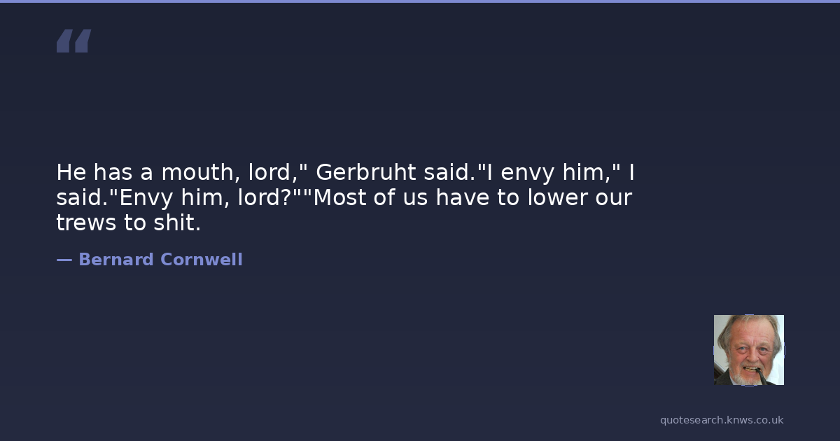 He has a mouth, lord," Gerbruht said."I envy him," I said."Envy him, lord?""Most of us have to lower our trews to shit.