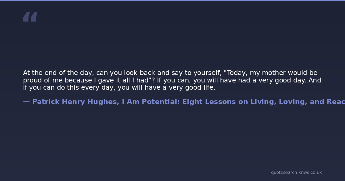 At the end of the day, can you look back and say to yourself, "Today, my mother would be proud of me because I gave it all I had"? If you can, you will have had a very good day. And if you can do this every day, you will have a very good life.