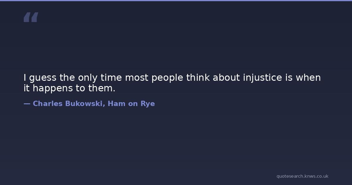 I guess the only time most people think about injustice is when it happens to them.
