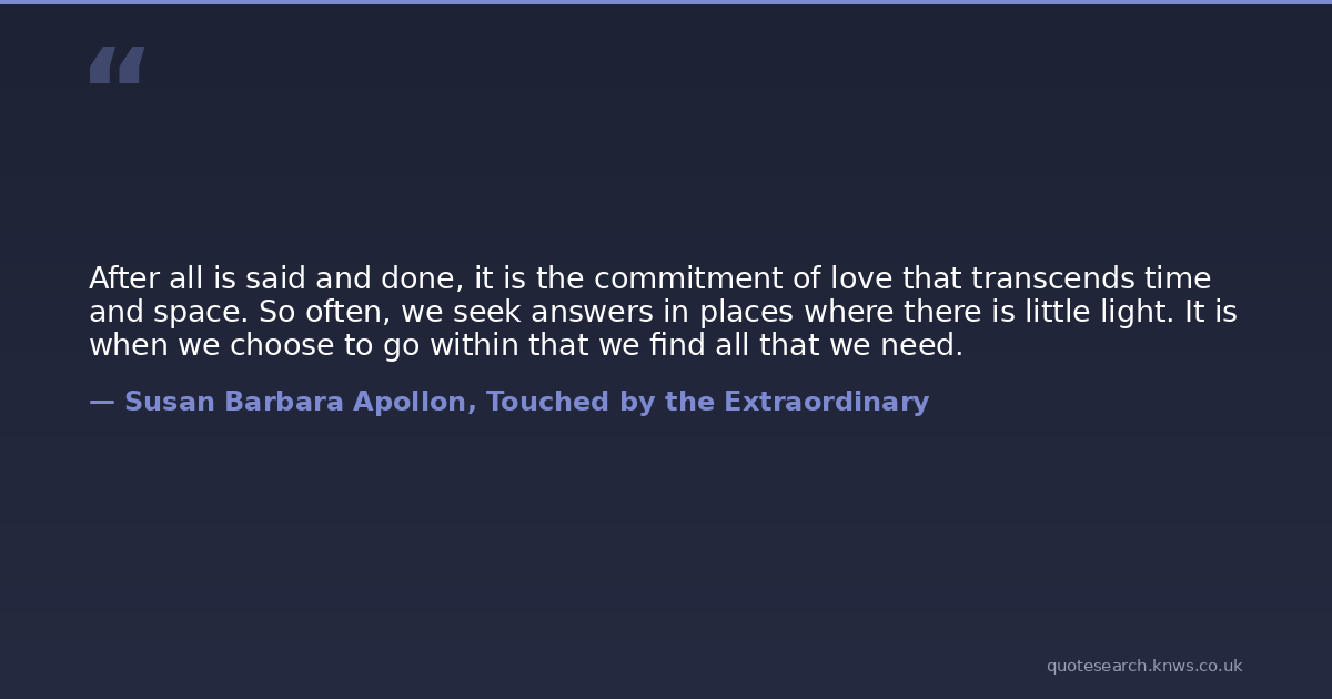 After all is said and done, it is the commitment of love that transcends time and space. So often, we seek answers in places where there is little light. It is when we choose to go within that we find all that we need.