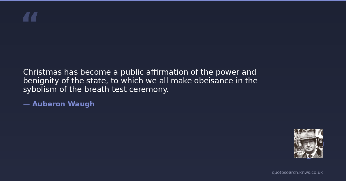 Christmas has become a public affirmation of the power and benignity of the state, to which we all make obeisance in the sybolism of the breath test ceremony.