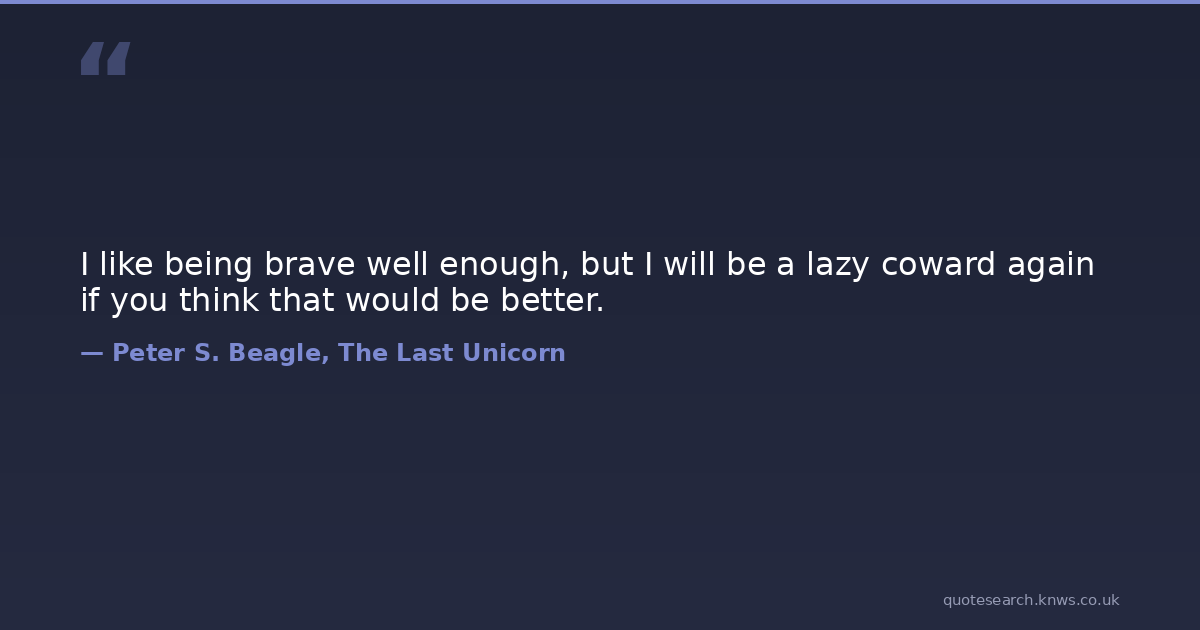 I like being brave well enough, but I will be a lazy coward again if you think that would be better.
