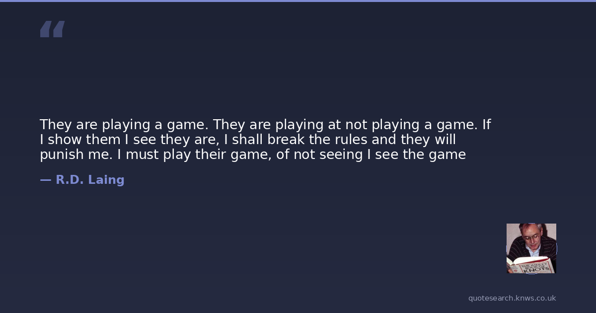 They are playing a game. They are playing at not playing a game. If I show them I see they are, I shall break the rules and they will punish me. I must play their game, of not seeing I see the game