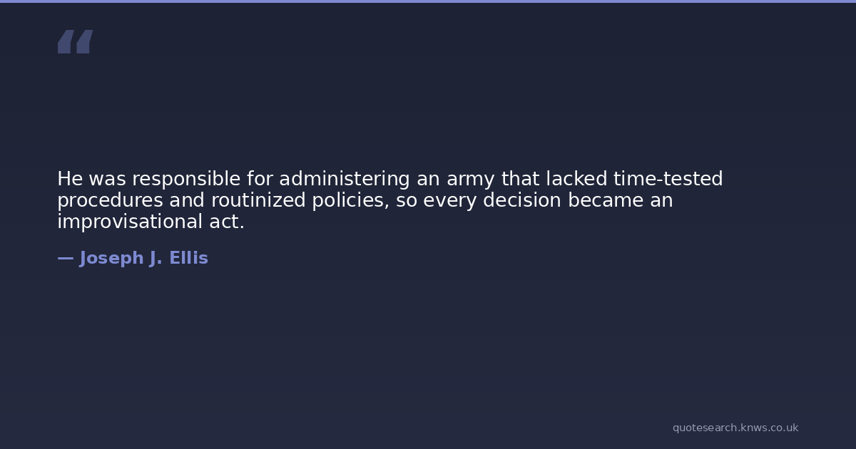 He was responsible for administering an army that lacked time-tested procedures and routinized policies, so every decision became an improvisational act.