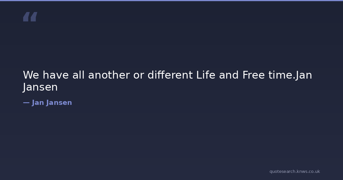 We have all another or different Life and Free time.Jan Jansen time-management Download Image Share on X Share on Facebook Copy Link