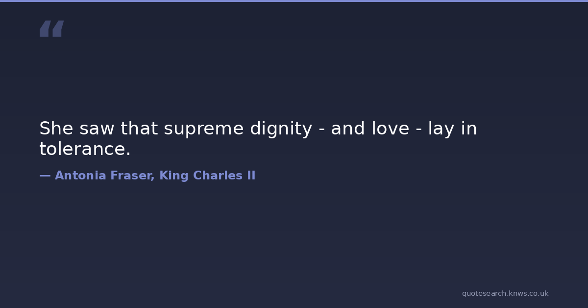 She saw that supreme dignity - and love - lay in tolerance. dignity love tolerance Download Image Share on X Share on Facebook Copy Link