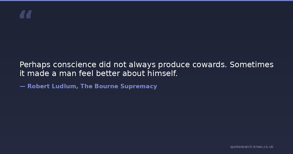 Perhaps conscience did not always produce cowards. Sometimes it made a man feel better about himself.