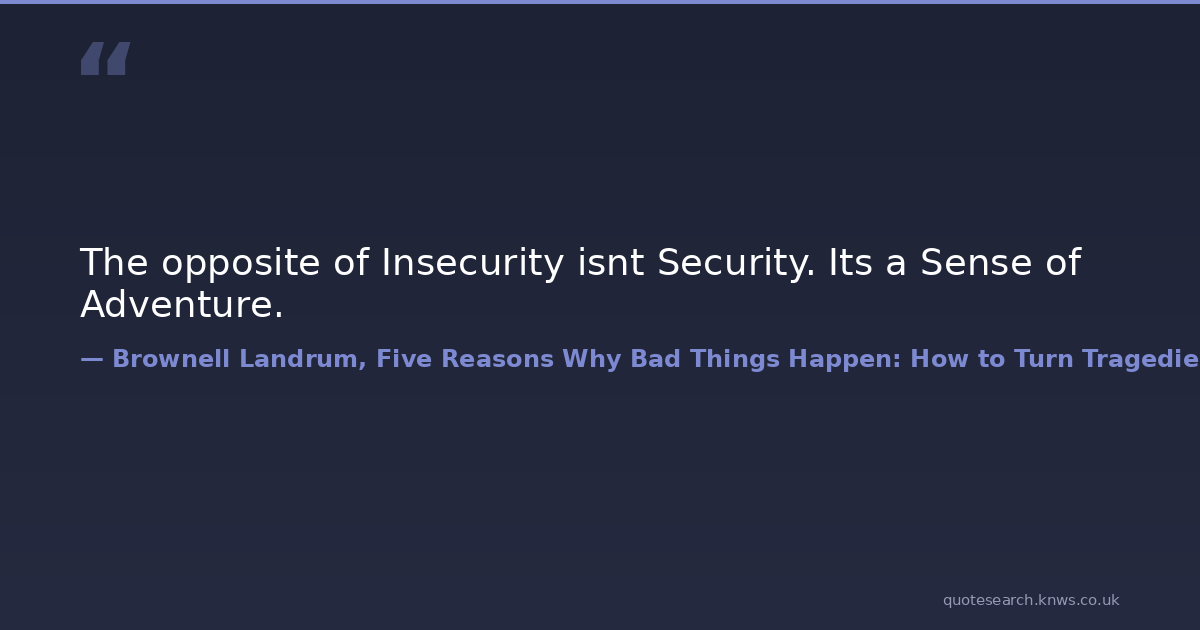 The opposite of Insecurity isnt Security. Its a Sense of Adventure. reasons-why security Download Image Share on X Share on Facebook Copy Link