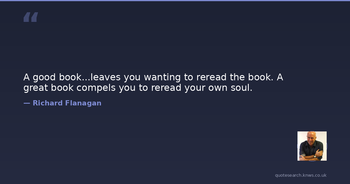 A good book...leaves you wanting to reread the book. A great book compels you to reread your own soul.