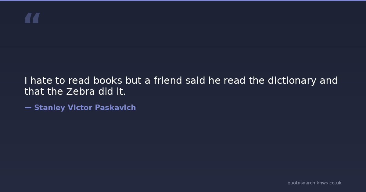 I hate to read books but a friend said he read the dictionary and that the Zebra did it.
