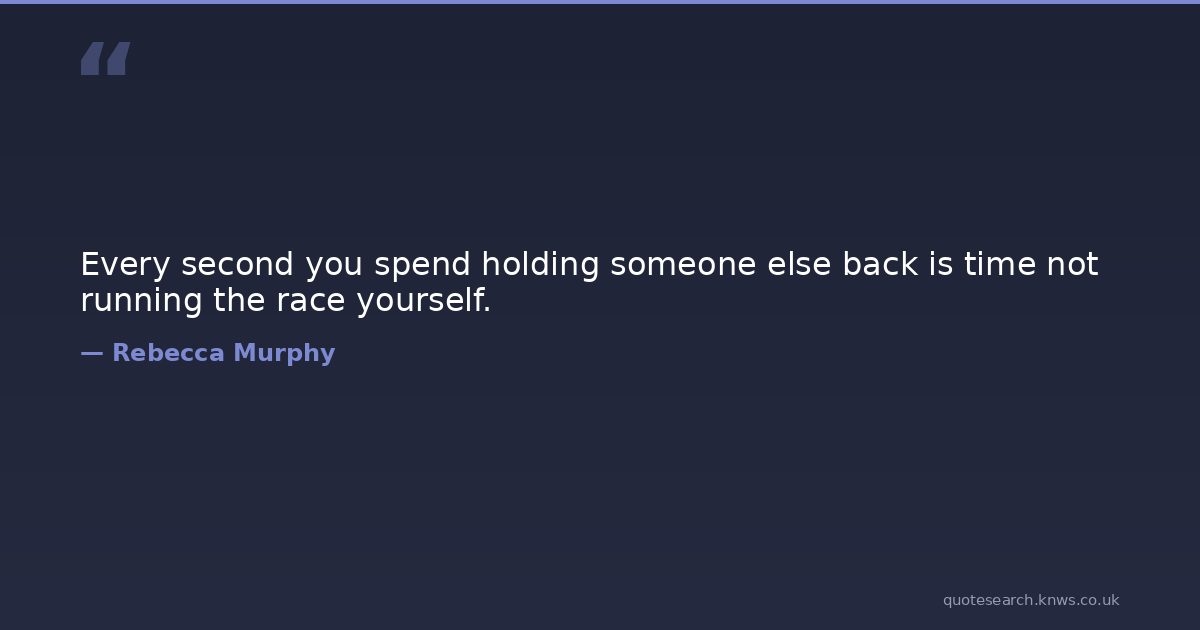 Every second you spend holding someone else back is time not running the race yourself.