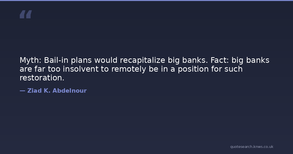 Myth: Bail-in plans would recapitalize big banks. Fact: big banks are far too insolvent to remotely be in a position for such restoration.