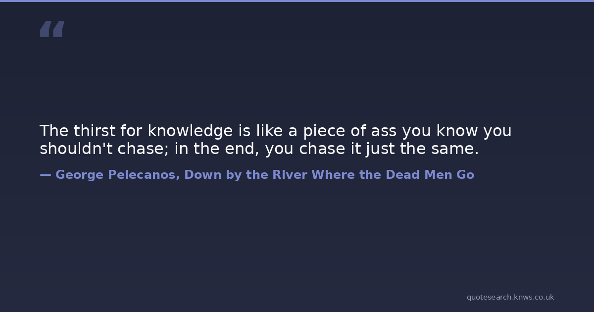 The thirst for knowledge is like a piece of ass you know you shouldn't chase; in the end, you chase it just the same. knowledge truth Download Image Share on X Share on Facebook Copy Link