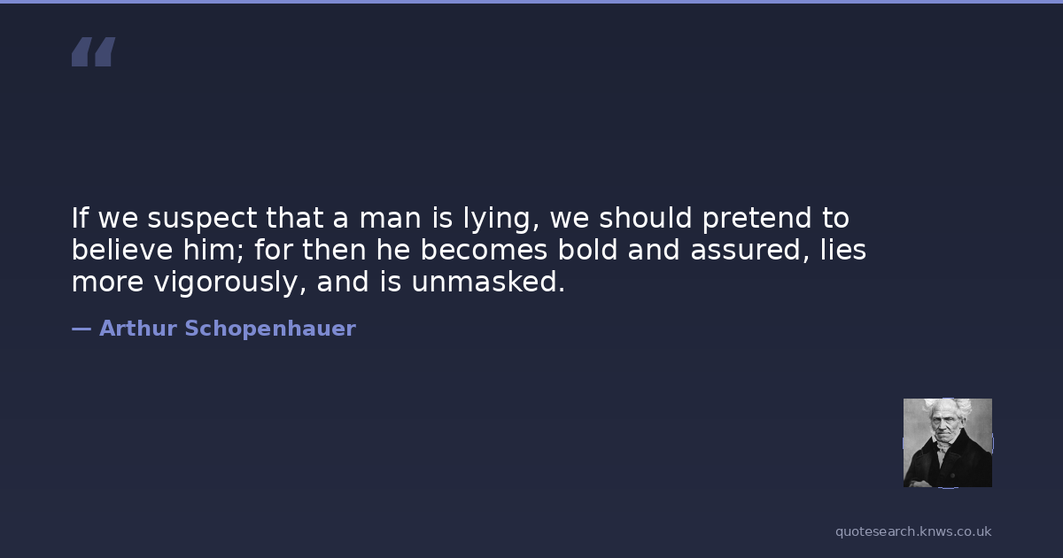 If we suspect that a man is lying, we should pretend to believe him; for then he becomes bold and assured, lies more vigorously, and is unmasked.