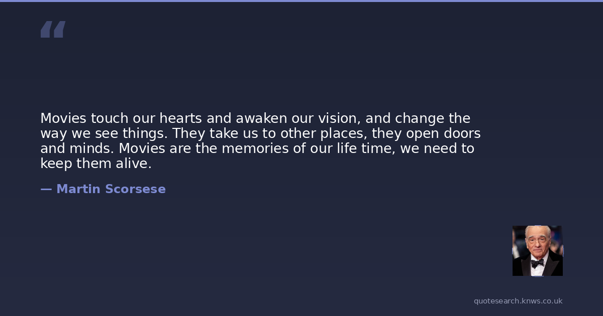 Movies touch our hearts and awaken our vision, and change the way we see things. They take us to other places, they open doors and minds. Movies are the memories of our life time, we need to keep them alive.