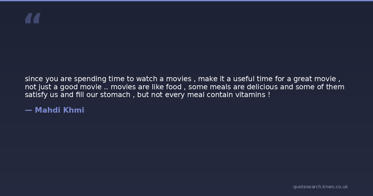 since you are spending time to watch a movies , make it a useful time for a great movie , not just a good movie .. movies are like food , some meals are delicious and some of them satisfy us and fill our stomach , but not every meal contain vitamins !