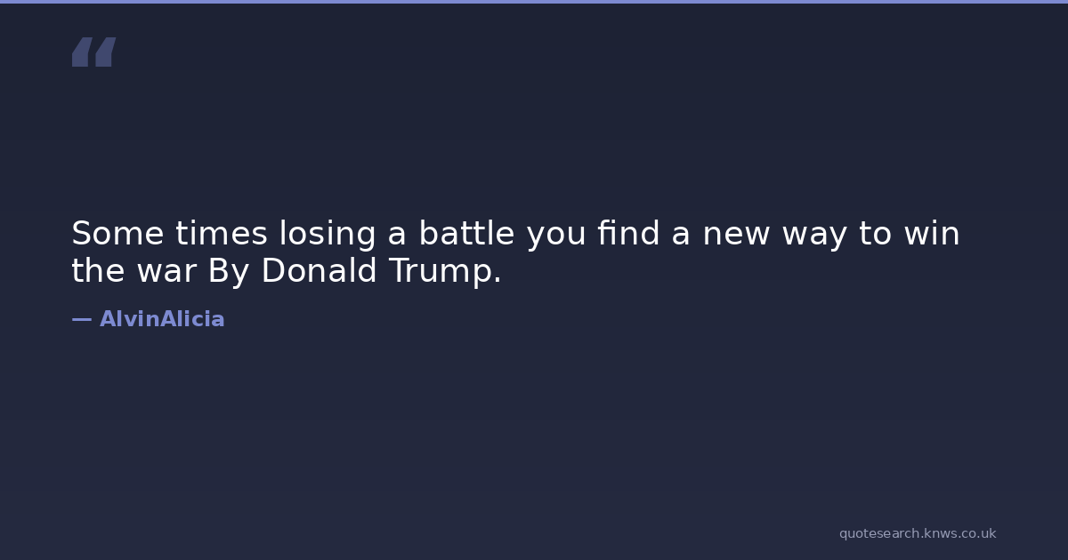 Some times losing a battle you find a new way to win the war By Donald Trump. win Download Image Share on X Share on Facebook Copy Link