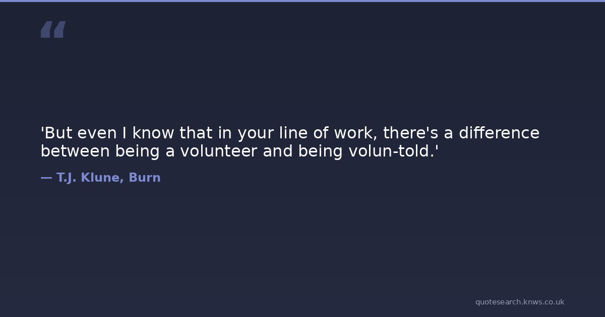 'But even I know that in your line of work, there's a difference between being a volunteer and being volun-told.'