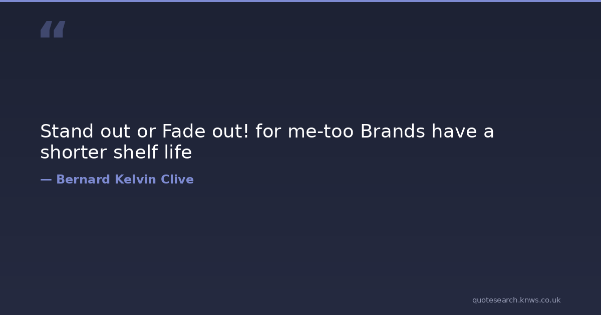 Stand out or Fade out! for me-too Brands have a shorter shelf life be-different branding stand-out Download Image Share on X Share on Facebook Copy Link