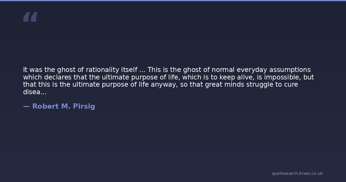 It was the ghost of rationality itself ... This is the ghost of normal everyday assumptions which declares that the ultimate purpose of life, which is to keep alive, is impossible, but that this is the ultimate purpose of life anyway, so that great minds struggle to cure diseases so that people may live longer, but only madmen ask why. One lives longer in order that he may live longer. There is no other purpose. That is what the ghost says.