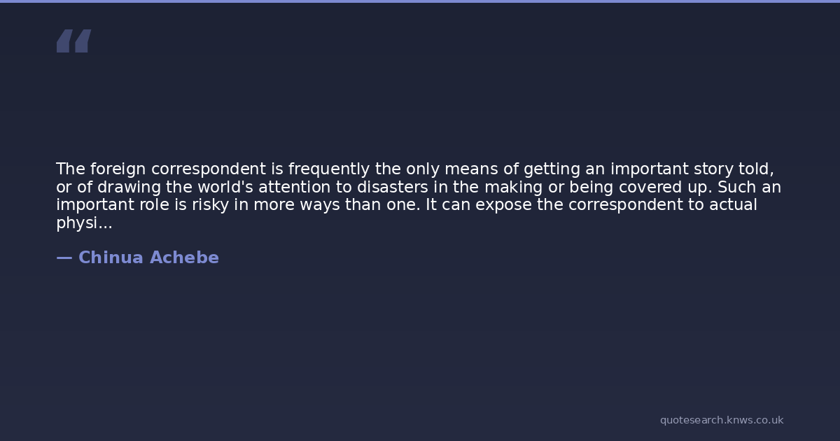 The foreign correspondent is frequently the only means of getting an important story told, or of drawing the world's attention to disasters in the making or being covered up. Such an important role is risky in more ways than one. It can expose the correspondent to actual physical danger; but there is also the moral danger of indulging in sensationalism and dehumanizing the sufferer. This danger immediately raises the question of the character and attitude of the correspondent, because the same qualities of mind which in the past separated a Conrad from a Livingstone, or a Gainsborough from the anonymous painter of Francis Williams, are still present and active in the world today. Perhaps this difference can best be put in one phrase: the presence or absence of respect for the human person.